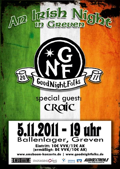 Neben den GoodNightFolks wird auch die Band Craic auftreten.
