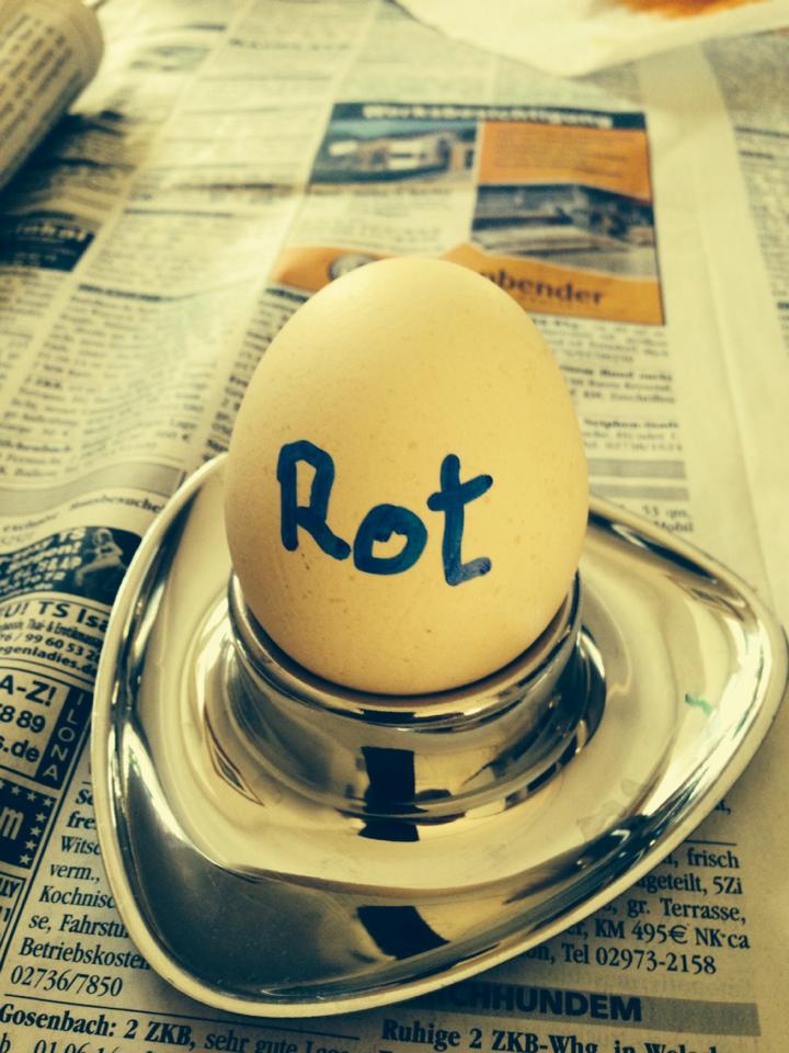 dann werde ich die Eier weiß färben und drauf schreiben welche Farbe das ist lach