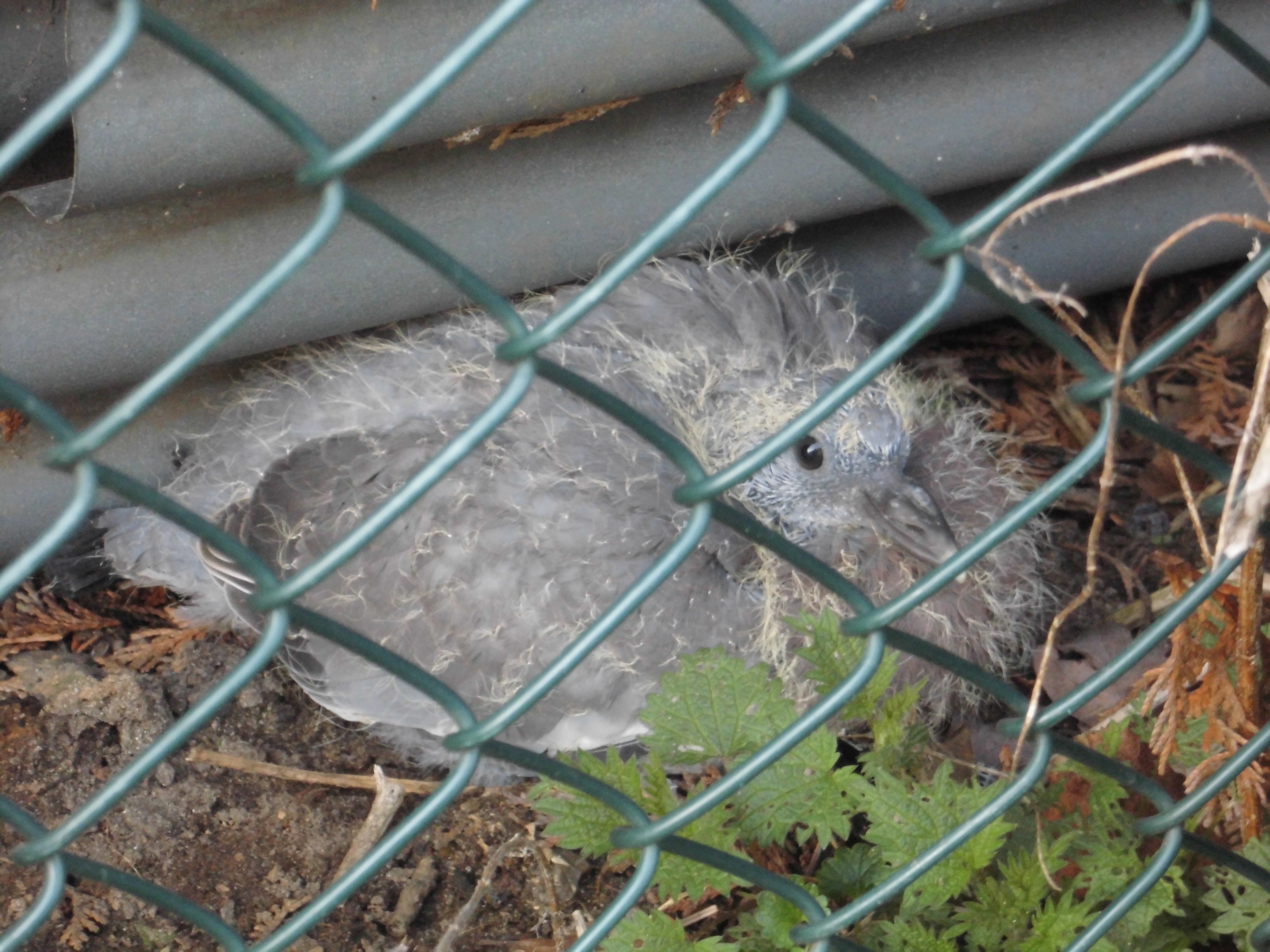 Junge Taube in Deckung und es blüht etwas      |